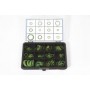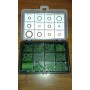 Garnitura od 12 različitih dimenzija O-ring gumica (120 kom.ukupno) zelene boje (viton) za brtvljenje sistema klime na vozilima, u plastičnoj kutiji.
