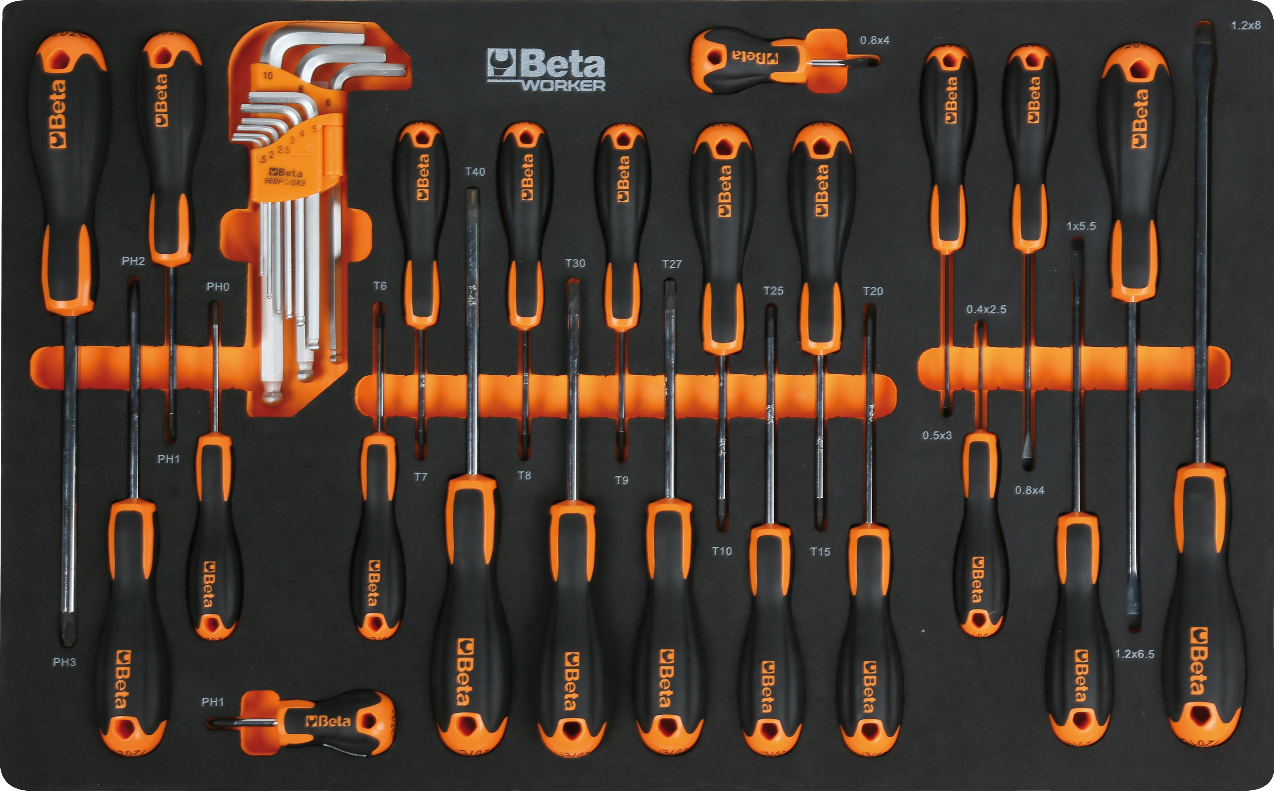 Radionička kolica s kompletom od 240 komada alata iz linije Beta Worker, smještenog u ležištima.