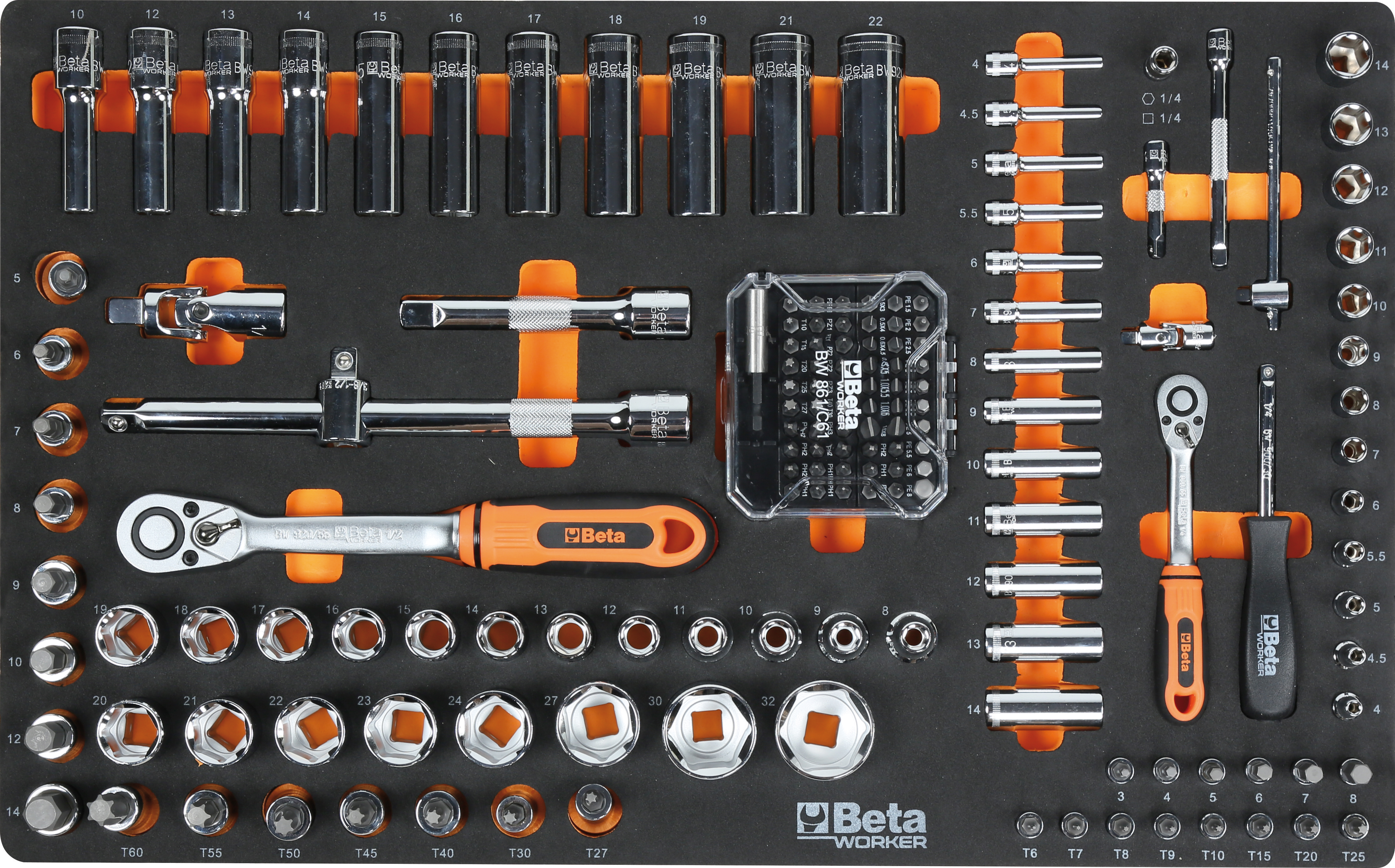Radionička kolica s kompletom od 309 komada alata iz linije Beta Worker, smještenog u ležištima.