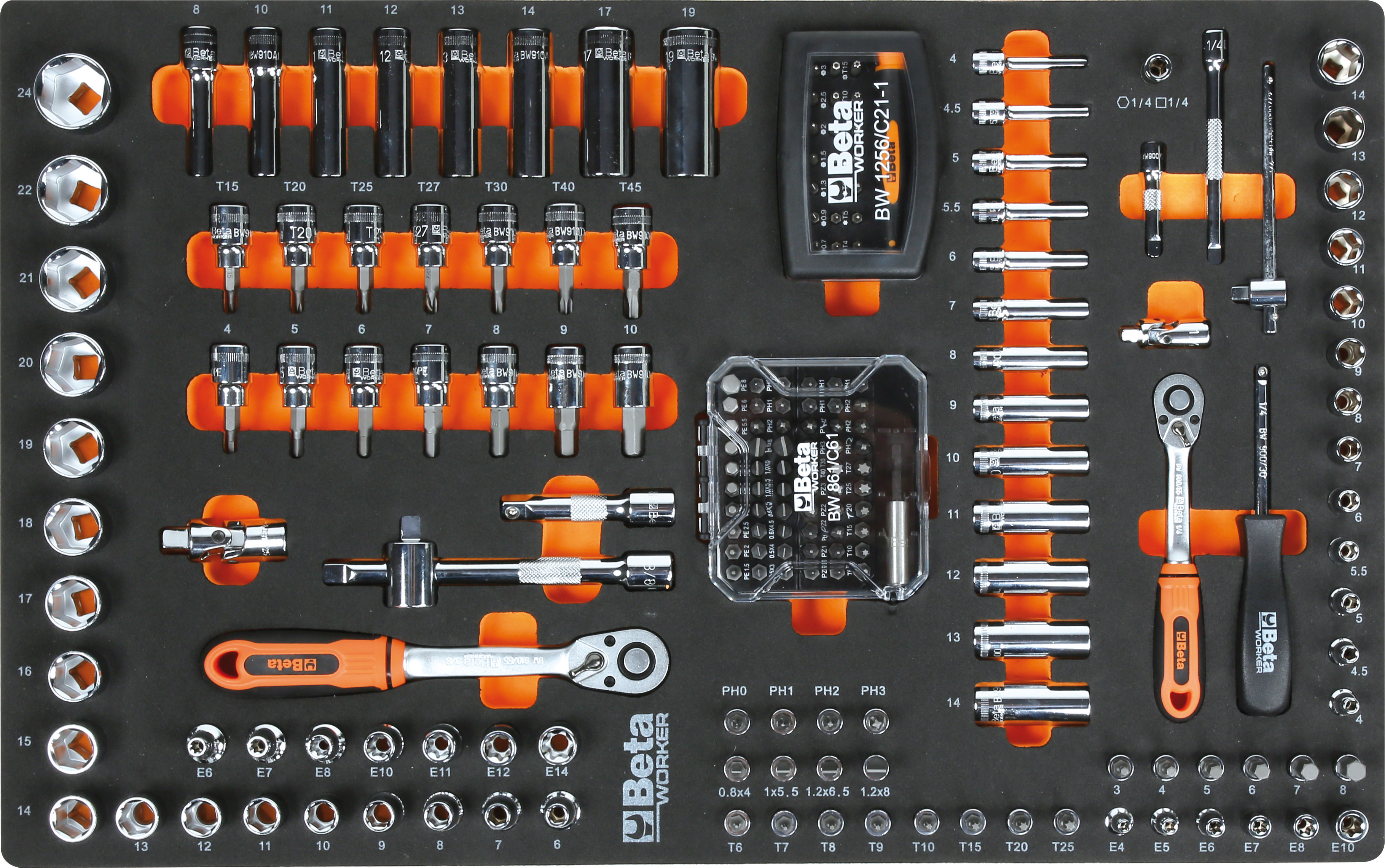 Radionička kolica s kompletom od 398 komada alata iz linije Beta Worker, smještenog u ležištima.
