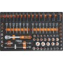 Komplet sadrži 398 komada alata raspodijeljenih u 7 mekanih Soft Module System ležišta, prema specifikaciji u nastavku:
